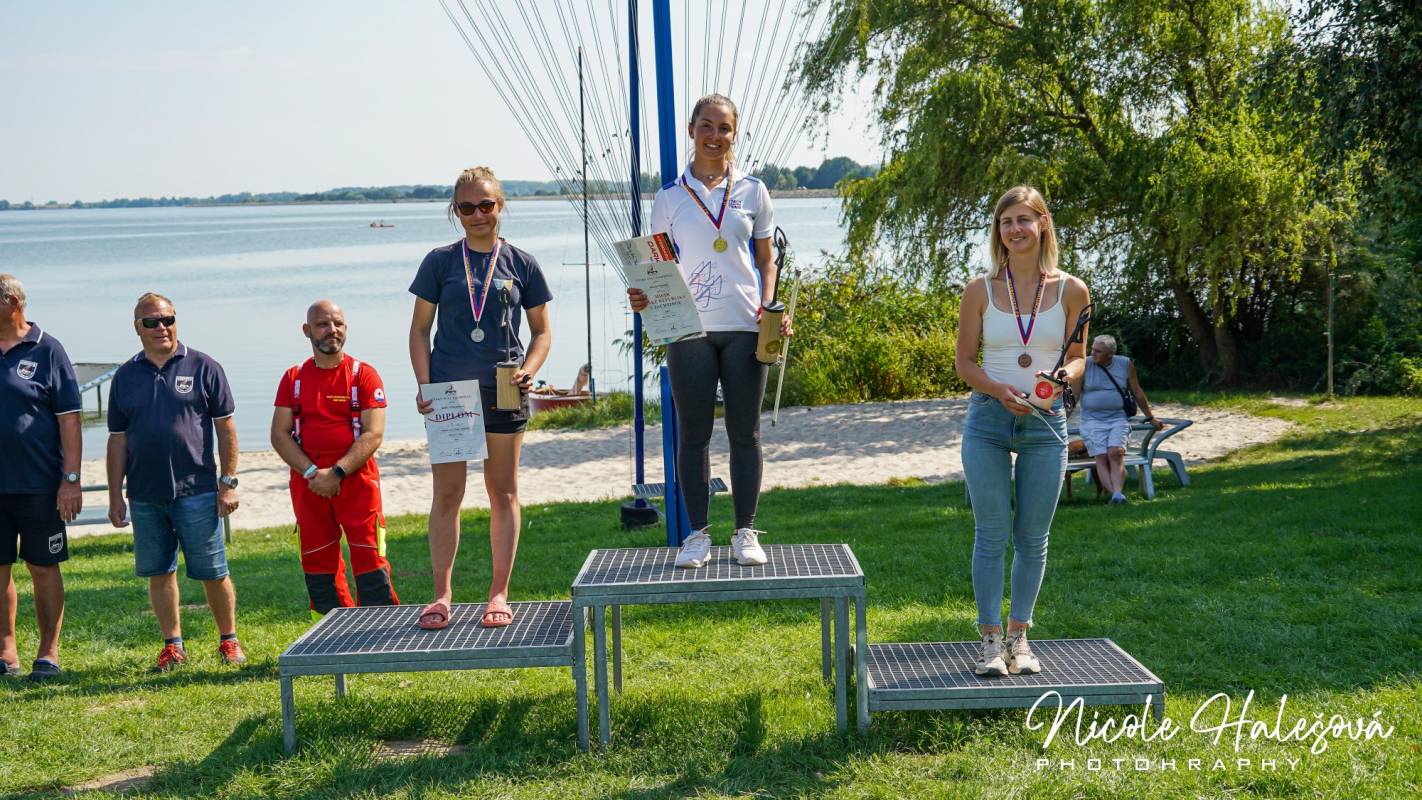 Na třetím místě skončila juniorská mistryně Evropy osmnáctiletá Alessia Palanti, která žije trvale v Itálii, a v Česku jela teprve druhý závod. Zároveň vyhrála kategorie žen i juniorů: „Přijela jsem už ve středu a stejně jako ve čtvrtek na Nových Mlýnech krásně foukalo, byl to parádní jachting. Škoda, že na závod už to tak dobře nevyšlo. Byla jsem tady sama bez trenéra a jsem ráda, že se mistrovství odjelo. Vítr se hodně měnil, a to nejsou podmínky, na jaké jsem zvyklá. Ale přesto se mi to moc líbilo, už se těším na příští závody, které tady zase pojedu. České závody mám moc ráda, protože jsou úplně jiné než jinde v Evropě. Tady přijedou všichni karavany, v nichž spí přímo v areálu klubu, jsou tak všichni pohromadě, večer je párty, všichni jsou kamarádi. Sice si ještě moc českých závodníků nepamatuji jménem, ale už některé znám,“ smála s Alessia po závodě. „Nyní mám volno, které strávím u babičky v Brně. A ve čtvrtek mi začíná škola, které se letos musím věnovat víc, protože mě na jaře čeká maturita,“ dodává. Přesto se chystá ještě do Vánoc na tři velké závody – pojede stejně jako další naši reprezentanti mistrovství Evropy tříd ILCA 6 a 7 v říjnu v bulharské Varně a pak v listopadu se vydá do Ománu nejdříve na mistrovství světa dospělých a pak na mistrovství světa juniorů World Sailing.