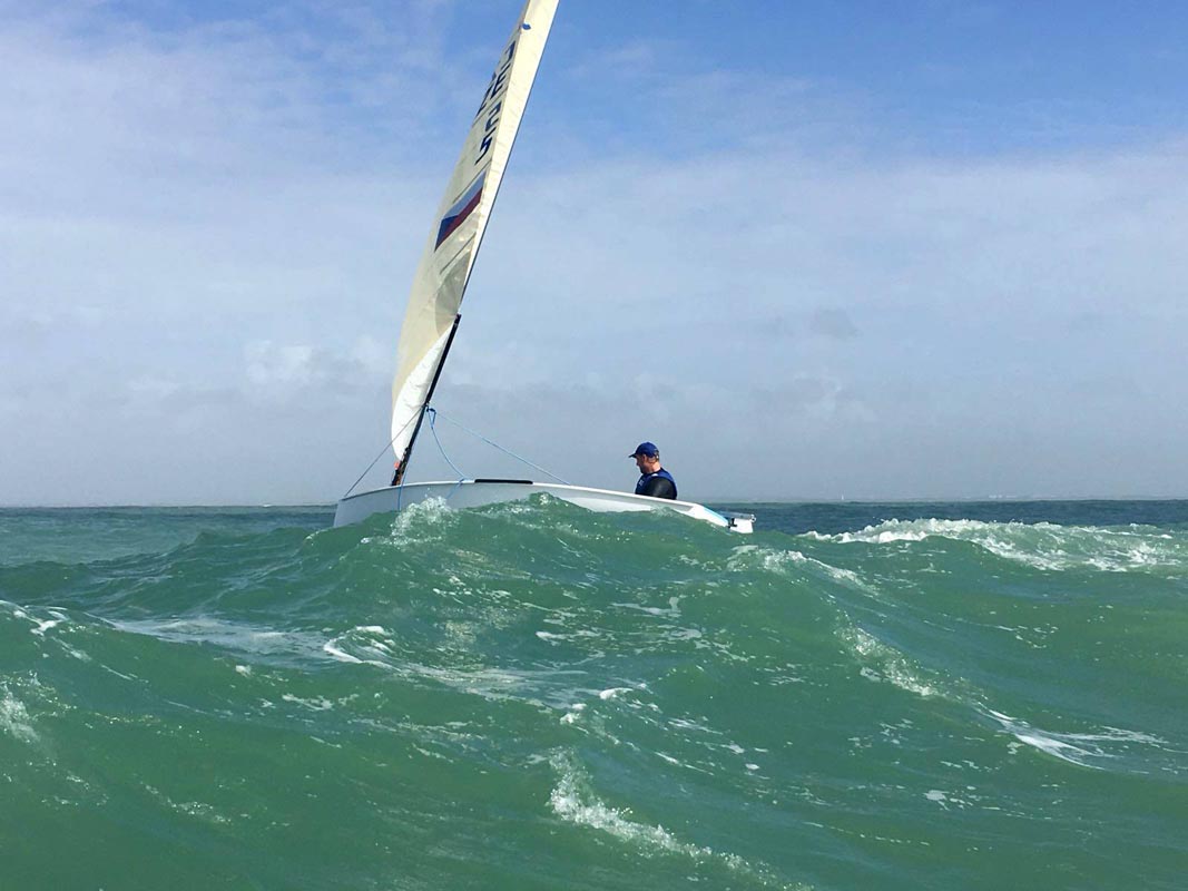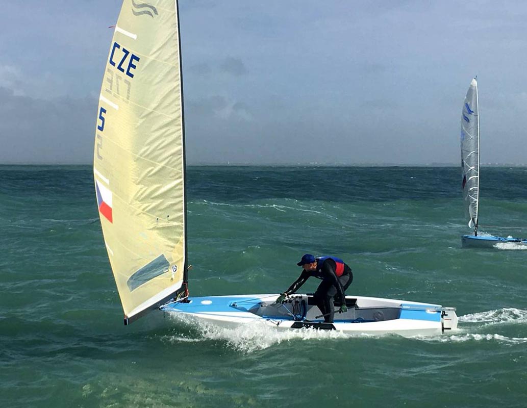 Krátce po poledni byla odstartována první rozjížďka, za větru 7–10 uzlů. „Dnes jsme strávili celý den na vodě. V první rozjížďce zajel Ondra vynikající 10. místo, já BFD. Druhá rozjížďka byla přerušená, protože vítr zeslábnul na minimum. Po včerejší bouři zbyly velké vlny, slabší vítr přinesl relativně velké změny a díry. Byl to celkem složitý jachting,“ hodnotí Michal. „Zítra je předpověď na více větru, tak jsou v plánu tři rozjížďky. Dneska výjimečně nepršelo, ale zítra nás čeká zase klasický Cádiz s deštěm. Po včerejší vichřici bylo dnes fajnově až na ten vítr,“ dodává.