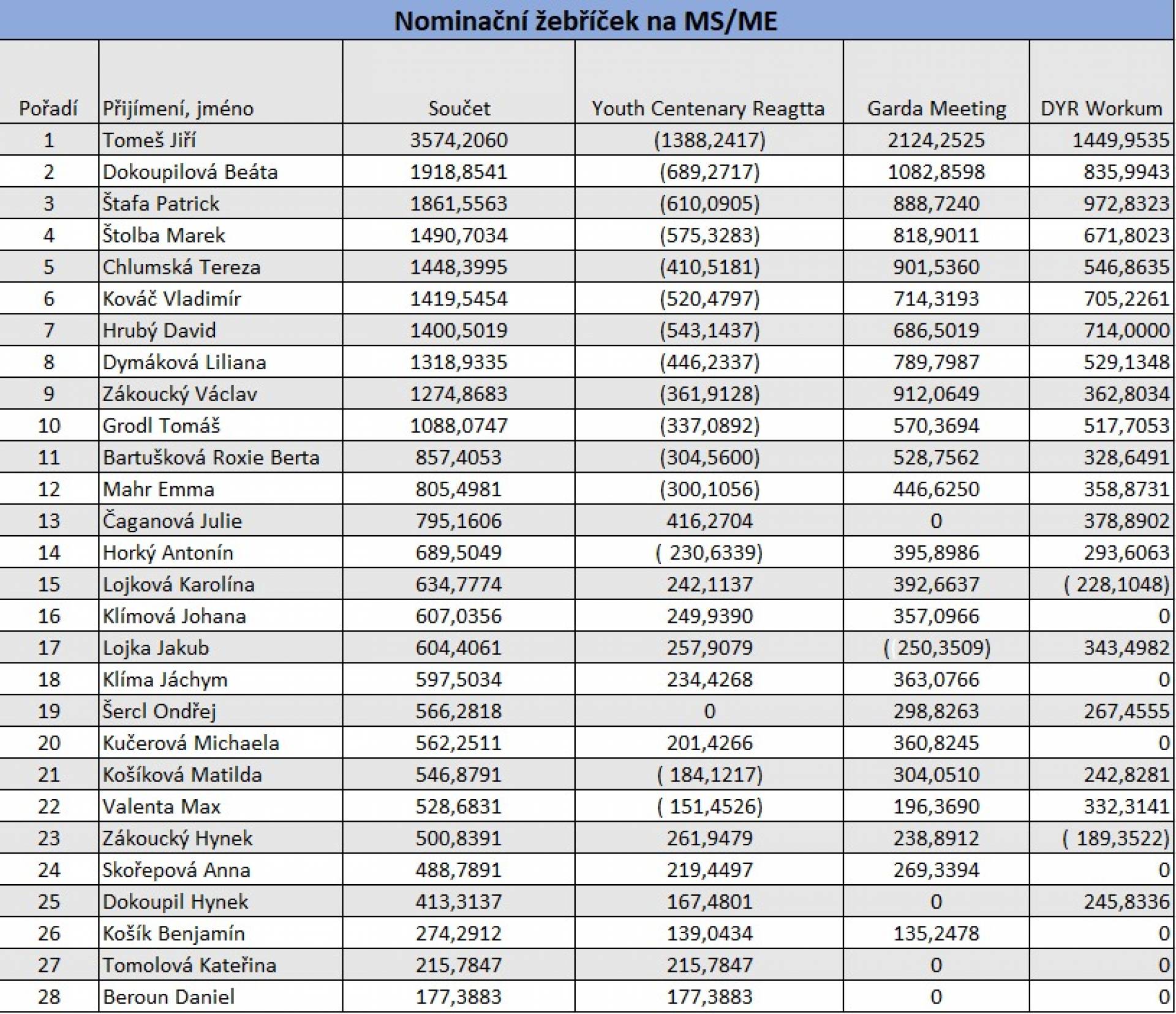 Na mistrovství světa třídy Optimist, které se pojede v červnu ve Španělsku, se kvalifikovali: Jiří Tomeš, Beáta Dokoupilová, Patrick Štafa, Marek Štolba a Tereza Chlumská