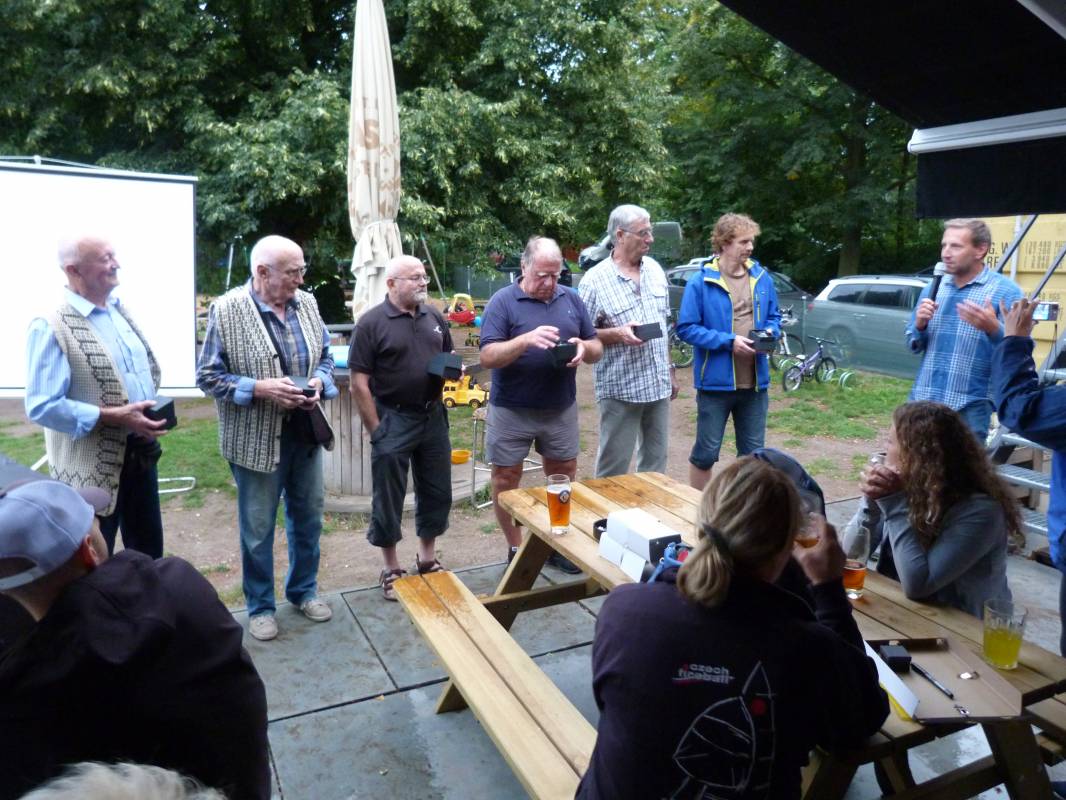 Na loděnici v Toušeni se v prostorách občerstvení Oddechoff sešli současní i bývalí členové s rodinami, zástupci spřátelených klubů (YC Neratovice, ČYK) i obce Lázně Toušeň, aby si buď připomněli, nebo se dozvěděli, co stálo za vznikem toušeňského jachtklubu, a oslavili jeho úspěšné setrvání na jachtařském poli už po celé půlstoletí. Příjemný večer, který jen na malou chvíli poznamenal déšť, přinesl vyznamenání zakládajících členů jachtklubu Františka Beneše, Pavla Beneše, Jana Dolejše, Přemysla Drábka, Josefa Sedlmaiera a Václava Tatíčka (in memoriam, zastoupen syny). Nebýt jejich nadšení a dřiny, nebyl by jachtklub v Toušeni vůbec vznikl a nemohl by za ta léta posbírat takové množství mistrovských titulů a dalších ocenění na domácí scéně jak mezi dospělými, tak v mládeži, ani tu rozrůstající se sbírku medailí z evropských a světových šampionátů. Za to jim patří obrovský dík!