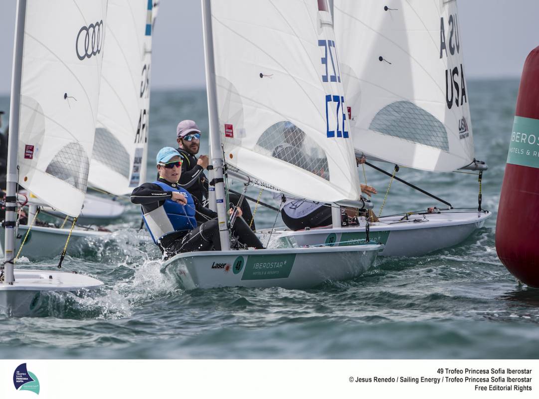 První den regaty olympijských tříd přinesl na Mallorku navzdory slibné předpovědi slabý přeskakující vítr. Situace se přes den různě měnila, takže zatímco na jedné straně zátoky se závodilo v 10uzlovém větru, na opačné straně se lodě houpaly v bezvětří.