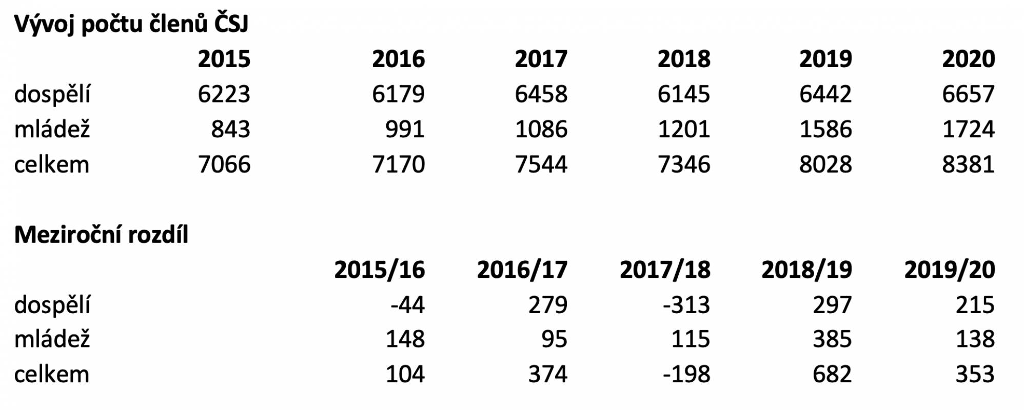Růst členské základny je prokazatelný zejména u dětí. Ve třídě Optimist v posledních letech startovalo na MČR přes 90 českých závodníků. Letos startovalo na MČR i přes Covid 19 110 závodníků. Velký nárůst zaznamenává i třída RS Feva. Velké kluby v Praze a Brně mají plný počet dětí ve všech dětských třídách, které provozují.