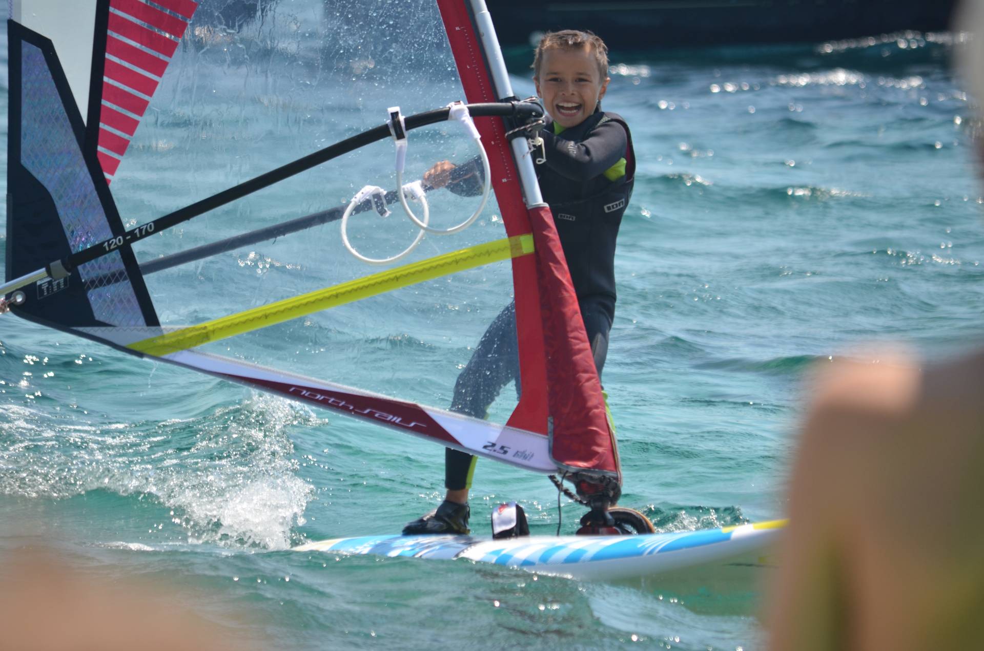 Cíl: Cílem je naučit děti základům windsurfingu = zvládnout jízdu všemi kurzy, obrat proti větru, obrat po větru, plážový start, jízdu na trapézu, jízdu bez středové ploutve… A připravit tak děti pro další cestu k závodnímu windsurfingu.