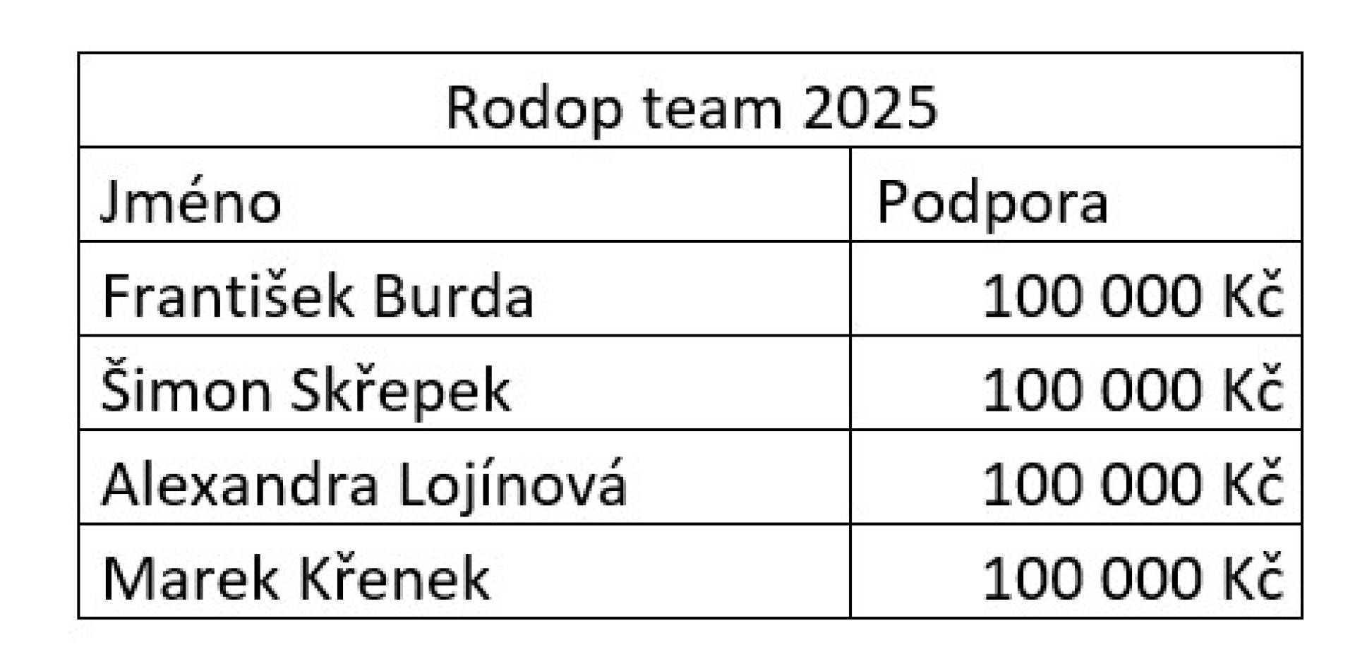 Návrh usnesení: Výkonný výbor ČSJ schvaluje finanční podporu IQFoil Rodop týmu na rok 2025: František Burda 100 000 Kč, Šimon Skřepek 100 000 Kč, Alexandra Lojínová 100 000 Kč, Marek Křenek 100 000 Kč. Prostředky je možné použít na materiál, trenérské zajištění a cestovní náhrady za akce.
